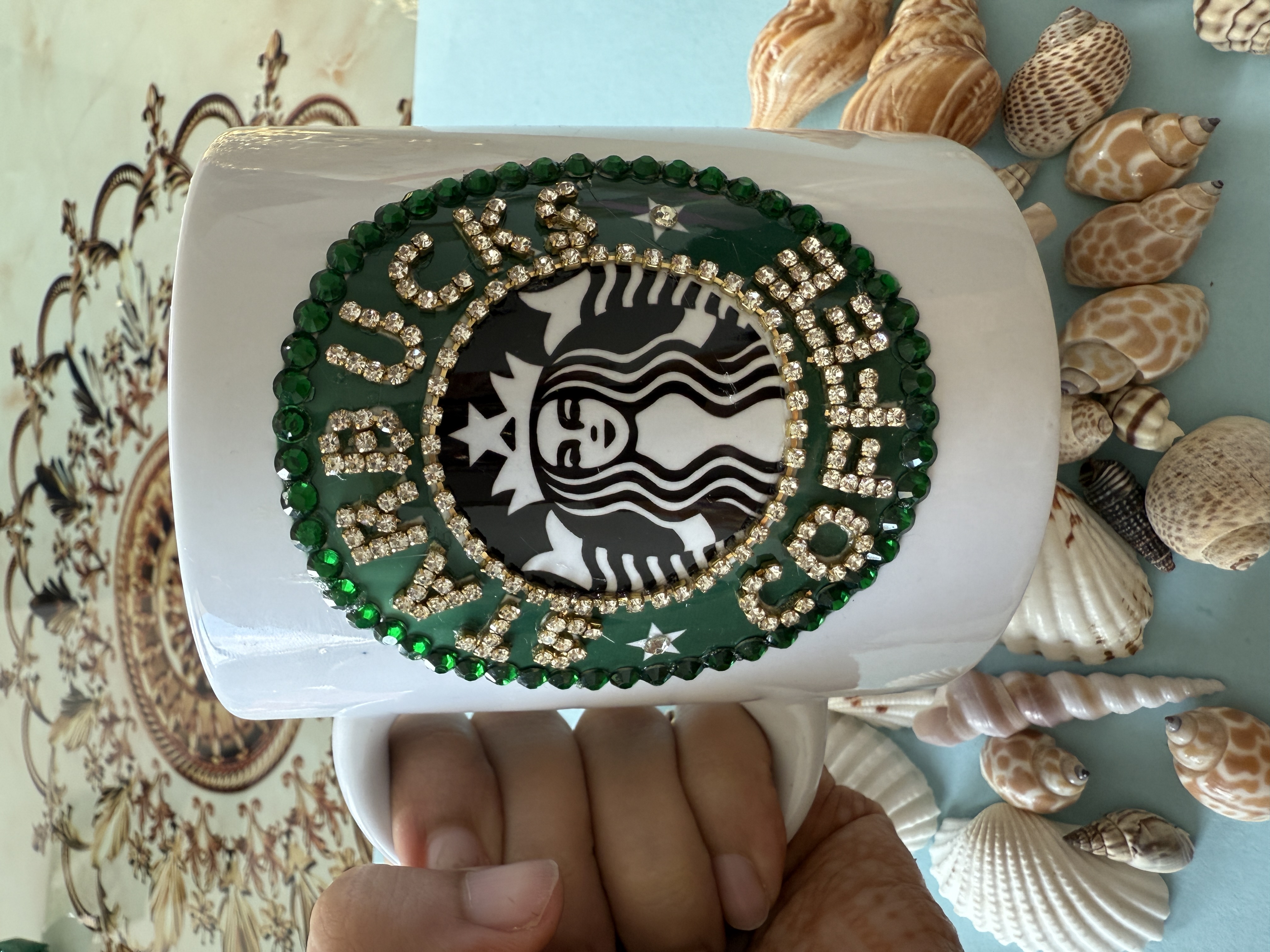Ceramic mugs designed with swarovski. Quantity 350 ml
